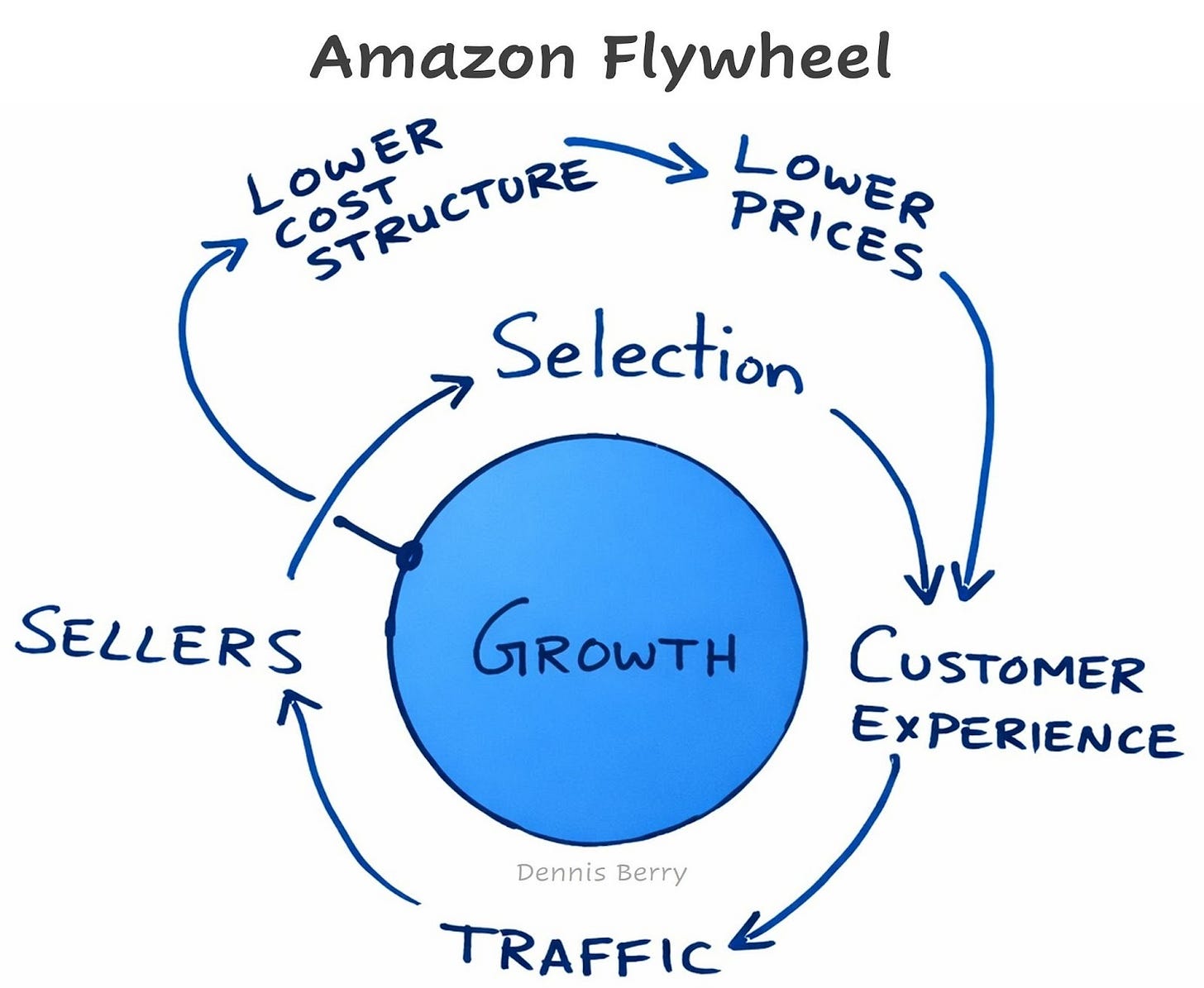 Jeff Bezos knew that if he wanted to be the biggest store on Earth, he couldnât just sell books. He needed to build an engine that would never stop. He drew a circle on a napkin and called it the âFlywheel.â