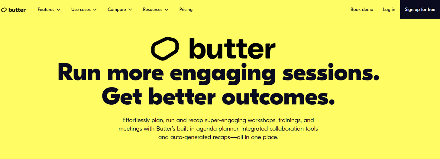 Effortlessly plan, run and recap super-engaging workshops, trainings, and meetings with Butter’s built-in agenda planner, integrated collaboration tools and auto-generated recaps—all in one place.